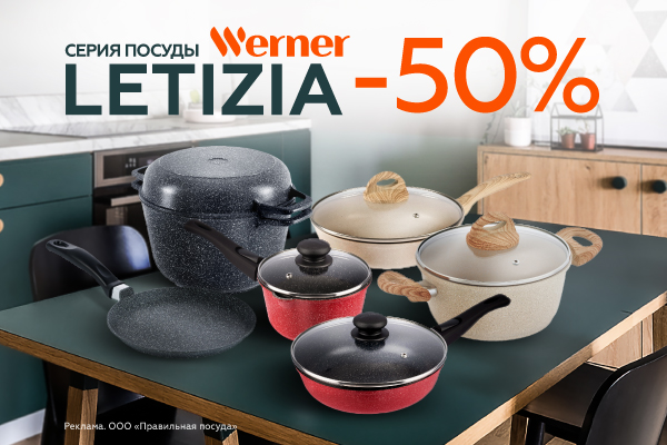 Скидка 50% по купону на серию посуды для приготовления Werner Letizia.